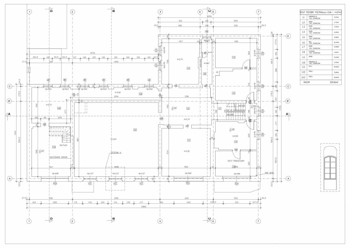 I Piętro (320,06 m²): Rozległa powierzchnia biurowa z zapleczem socjalnym, doskonale doświetlona, z sufitami podwieszanymi.