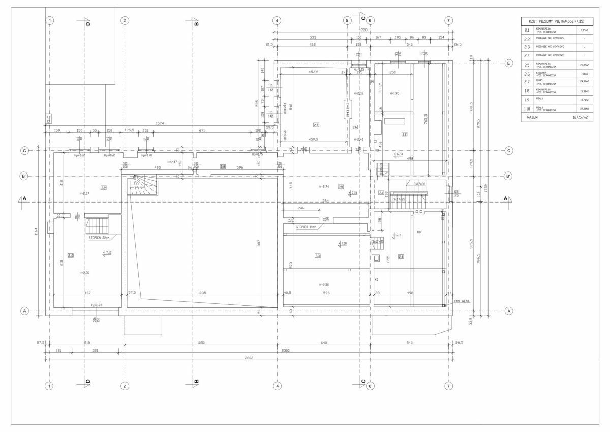 II Piętro (127,57 m²): Kameralna strefa biurowo-usługowa.
